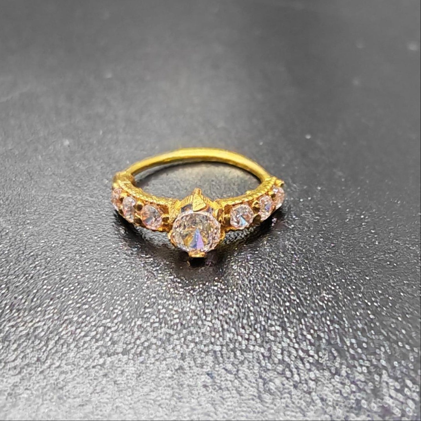 Made from solid 9ct Gold. Very unique design of a large cubic zirconia stones surrounded by 6 smaller stones. Will look stunning when worn.