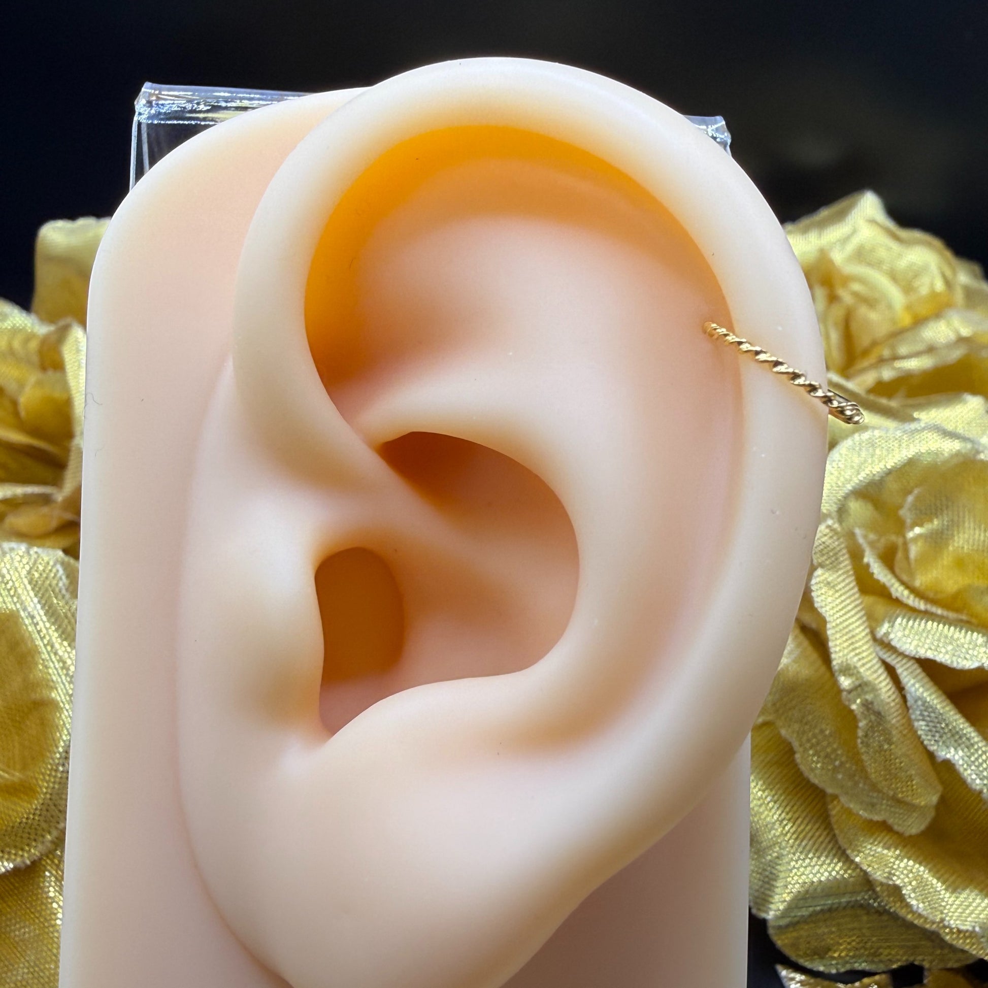 Solid 9ct Gold nose ring features a classic twisted design. Suitable for both nose and ears. This stylish design will look absolutely stunning when worn.