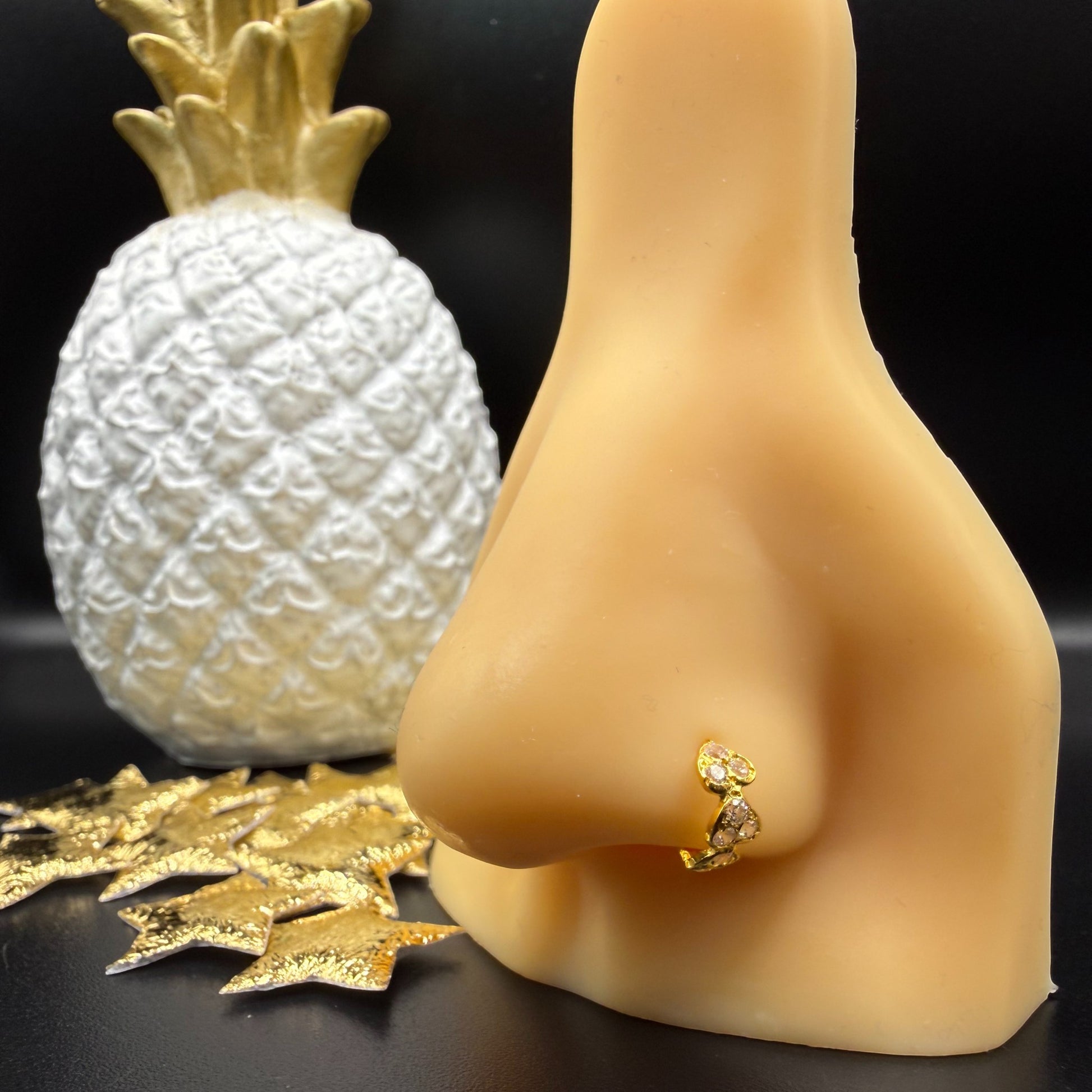 This stunning looking nose ring is made from solid 9ct Gold and features a unique heart shaped design set with white cubic zirconia stones. Suitable for both nose and ears. This unique and stylish design will look absolutely stunning when worn.